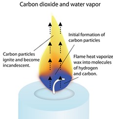 Sessizce yanan bir mum alevi çok verimli bir yanma makinesidir. Ancak alev çok az veya çok fazla hava veya yakıt alırsa, titreyebilir veya parlayabilir ve yanmamış karbon parçacıkları (kurum) tam olarak yanamadan alevden kaçar.