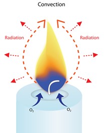 Bu daha soğuk hava ısıtıldığında, o da yükselir ve alevin tabanındaki daha soğuk hava ile yer değiştirir.